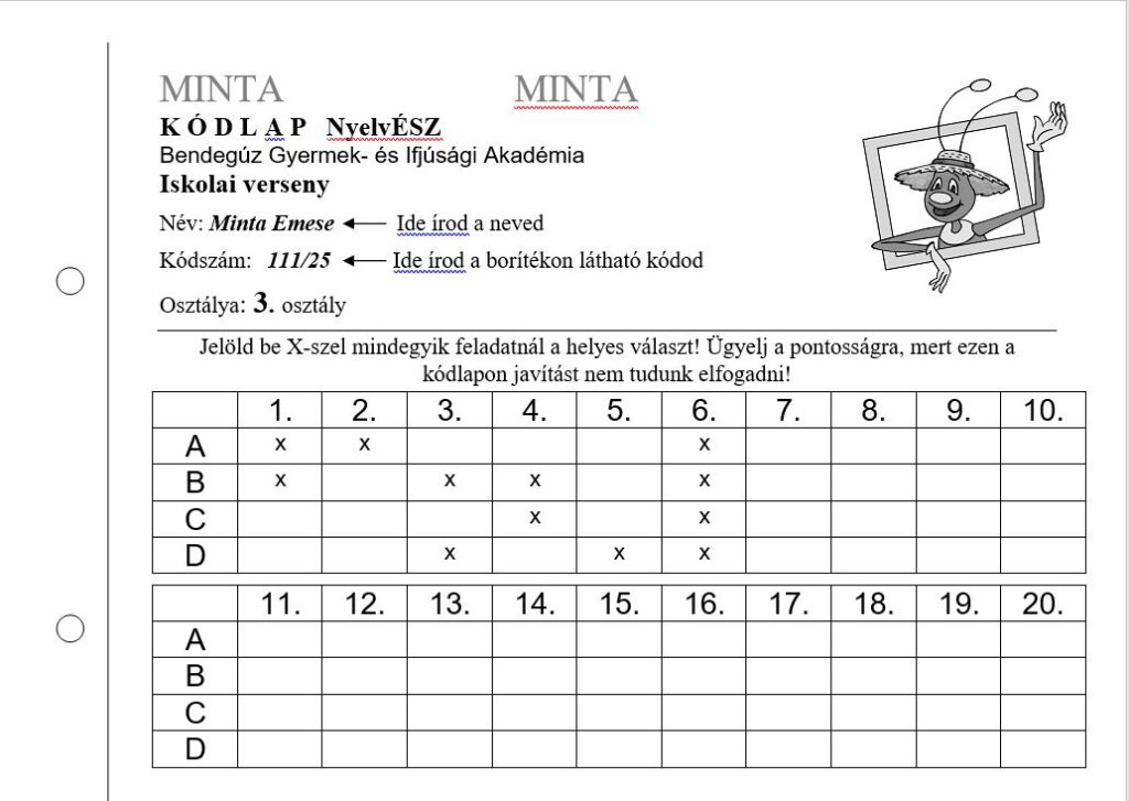 Az iskolák a Bendegúz Akadémiára visszaküldik a kódlapokat és ott történik a javítás és a kiértékelés.
