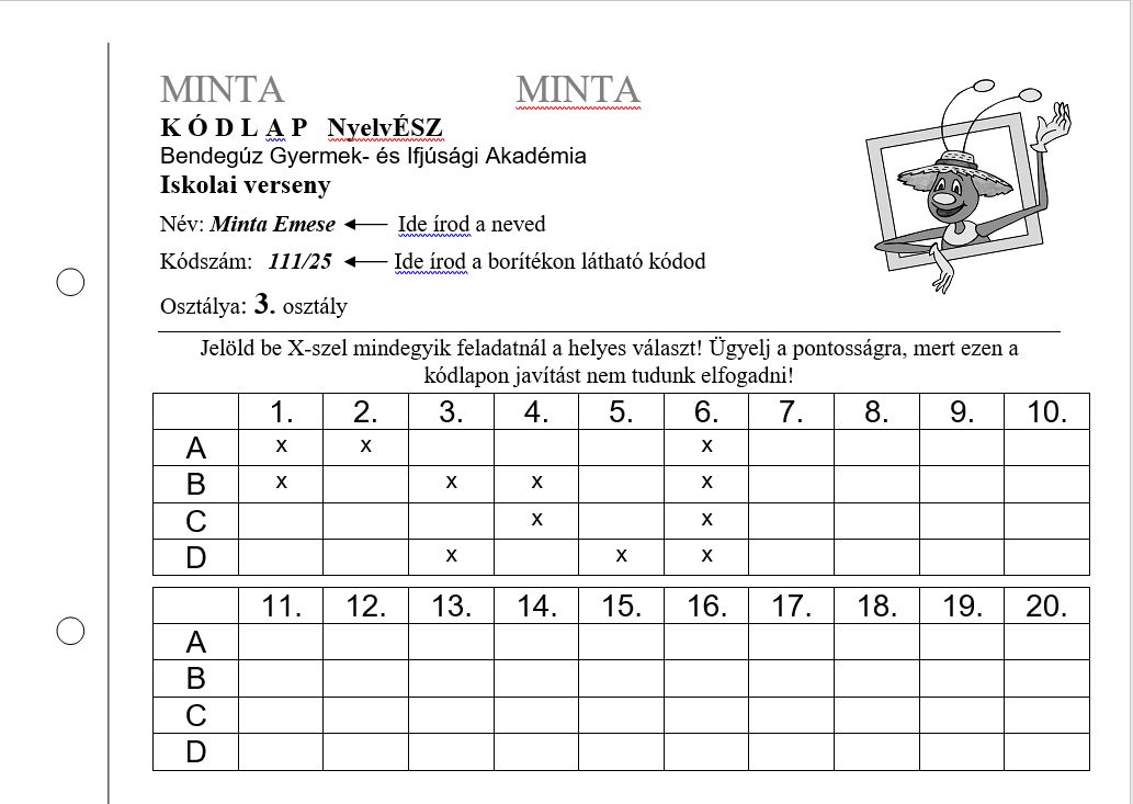 • A kódlapra mindenképp vezesse át a versenyző a megoldásait, ugyanis ezt értékeljük.